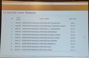 Sementara itu, Pejabat Pembuat Komitmen (PPK), Admira Wantogia menuturkan bahwa capaian ini merupakan bentuk sinergitas dan kolaborasi yang baik antara Bawaslu Provinsi dan Kabupaten/Kota Se-Provinsi Gorontalo atas pelaksanaan perencanaan kerja dengan realisasi program output kegiatan. Pungkasnya