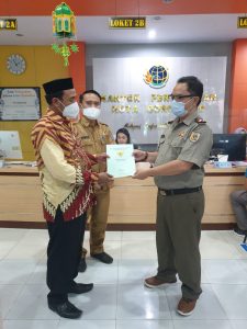 Gorontalo, Badan Pengawas Pemilihan Umum - Badan Pertanahan Nasional (BPN) Kota Gorontalo menyerahkan secara langsung sertifikat Tanah untuk Pembangunan Kantor Bawaslu Provinsi Gorontalo kepada Ketua Bawaslu Provinsi Gorontalo, Selasa (10/5/2022)