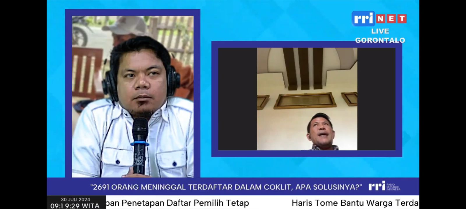 GORONTALO - Anggota Bawaslu Provinsi Gorontalo, Moh. Fadjri Arsyad, menjadi narasumber dalam acara "Pro Aspirasi" yang diselenggarakan oleh Radio Republik Indonesia (RRI) melalui Live Streaming RRI Digital, Selasa (30/07/2024). Acara ini mengangkat tema "2691 Orang Meninggal terdaftar dalam Coklit, Apa Solusinya?".