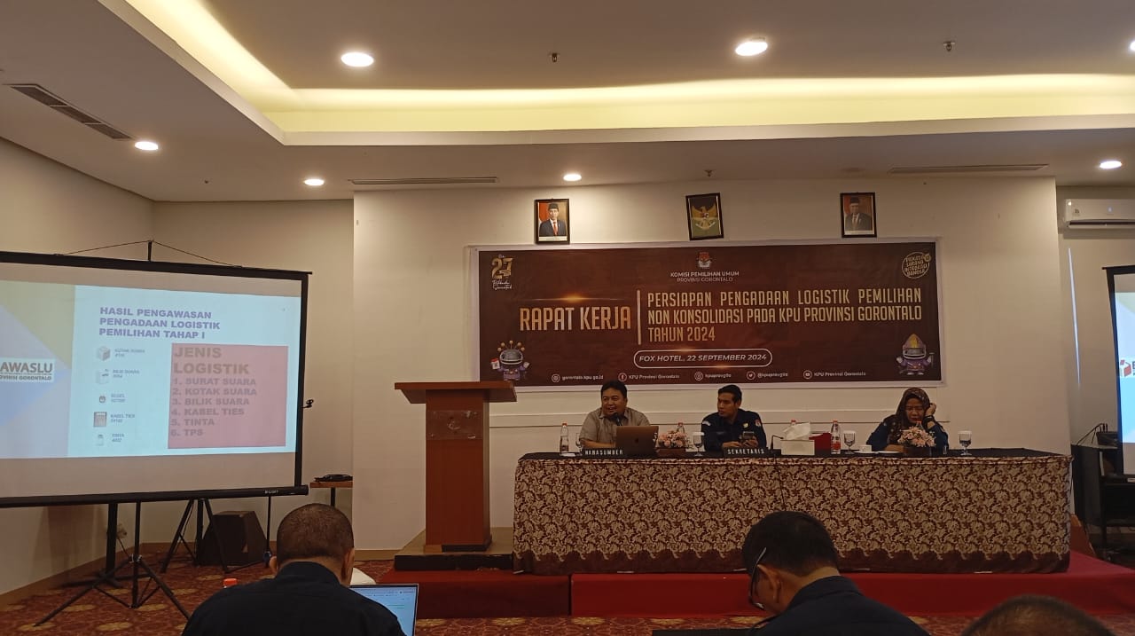 Gorontalo – Pengawasan logistik Pemilu 2024 menjadi salah satu perhatian serius Bawaslu Provinsi Gorontalo. Beberapa aspek krusial terkait logistik penting diawasi ketat oleh Bawaslu, mulai dari proses pencetakan hingga distribusi logistik ke tempat pemungutan suara (TPS). Hal ini disampaikan oleh Anggota Bawaslu Provinsi Gorontalo, Amin Abdullah, saat menjadi Narasumber dalam Rapat Kerja Persiapan Pengadaan Logistik Pemilihan yang diselenggarakan oleh KPU Provinsi Gorontalo di Hotel Fox, Kota Gorontalo, Minggu (22/9/2024).
