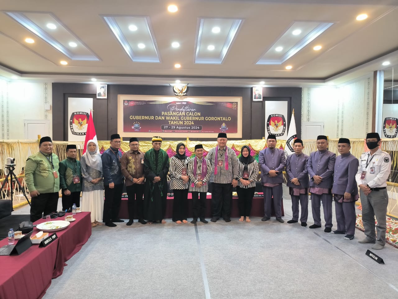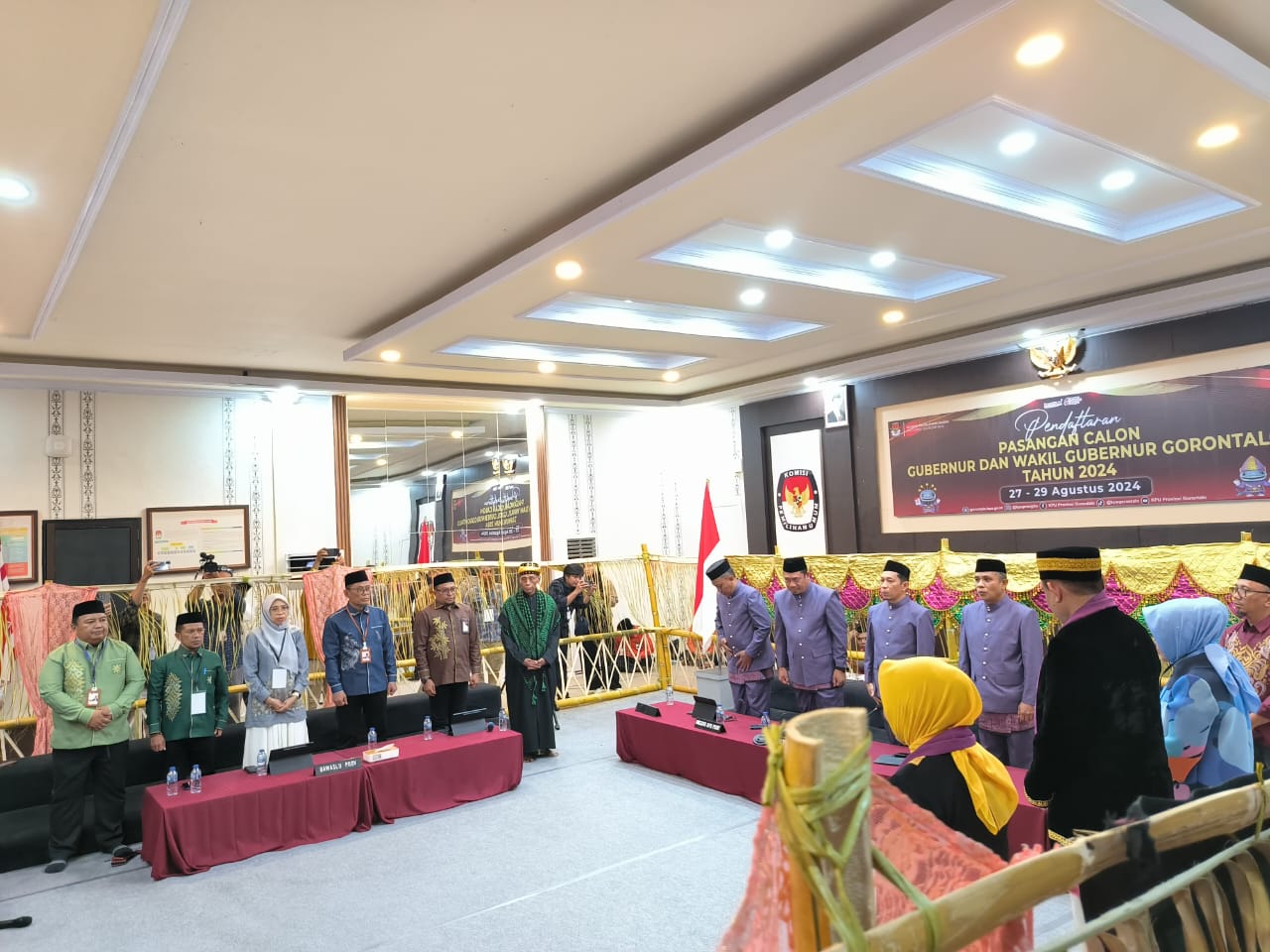 Pendaftaran Pasangan Calon Gubernur dan Wakil Gubernur Gorontalo Tahun 2024 di Kantor KPU Provinsi Gorontalo menggunakan adat Gorontalo.
