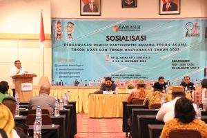 Gorontalo, Badan Pengawas Pemilhan Umum (Bawaslu) Provinsi Gorontalo - Salah satu unsur masyarakat yang penting untuk menjadi mitra strategi Bawaslu adalah tokoh agama, tokoh adat dan tokoh masyarakat. Hal tersebut diungkapkan Ketua Bawaslu Provinsi Gorontalo Idris Usuli saat memberikan arahan sekaligus membuka acara Sosialisasi Pengawasan Pemilu Partisipatif yang berlangsung di Hotel Maqna Kota Gorontalo Selasa, (15/11/2022).