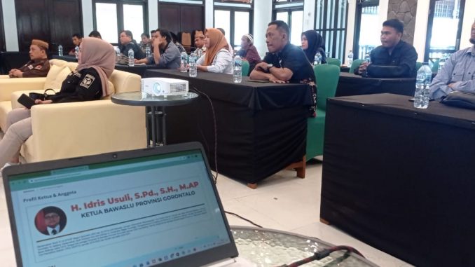 Bawaslu Provinsi Gorontalo Idris Usuli hadiri kegiatan fasilitasi dan pembinaan penanganan pelanggaran tindak pidana pemilu yang dilaksanakan di Villa Kencana Boalemo, Jum’at (23/06/2023).