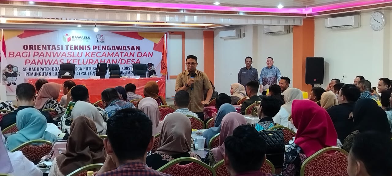 Boalemo - Ketua Bawaslu Provinsi Gorontalo, Idris Usuli, menjadi narasumber dalam kegiatan orientasi teknis pengawasan bagi Panwaslu Kecamatan dan Panwaslu Kelurahan/Desa se-Kabupaten Boalemo terkait Pemungutan Suara Ulang (PSU) pasca putusan Mahkamah Konstitusi. Acara ini diadakan di Hotel Grand Amalia Senin, (08/07/2024).