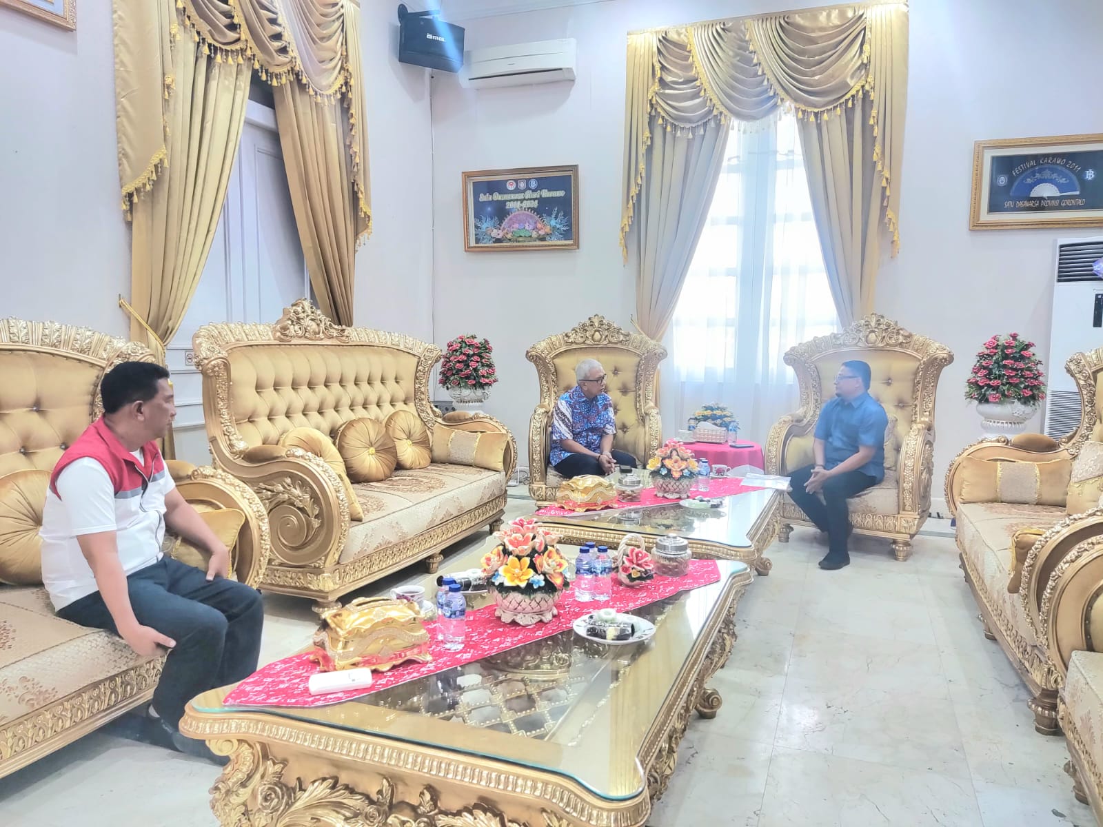 Ketua Bawaslu Provinsi Gorontalo Idris Usuli saat melakukan Audiensi dengan Pj Gubernur Gorontalo di Rujab Gubernur, Sabtu (24/08/2024).[/caption]
