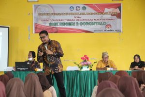 Gorontalo, Ketua Bawaslu Provinsi Gorontalo Idris Usuli hadir langsung sebagai Guru Tamu memberikan materi kepada para siswa dan Guru Fasilitator.