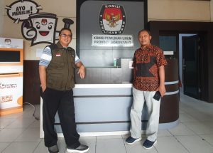 Mengawali tahun 2022 Pimpinan Bawaslu Provinsi Gorontalo Rahmad Mohi yang juga Koordinator Divisi Pengawasan dan Hubungan Antar lembaga sambangi KPU Provinsi Gorontalo dalam rangka koordinasi Pemutahiran Data Pemilih Berkelanjutan (PDPB) diterima oleh Anggota KPU Provinsi Gorontalo Divisi Data dan Informasi Sophian Rahmola diruang kerjanya, pada Kamis (13/01/2022).