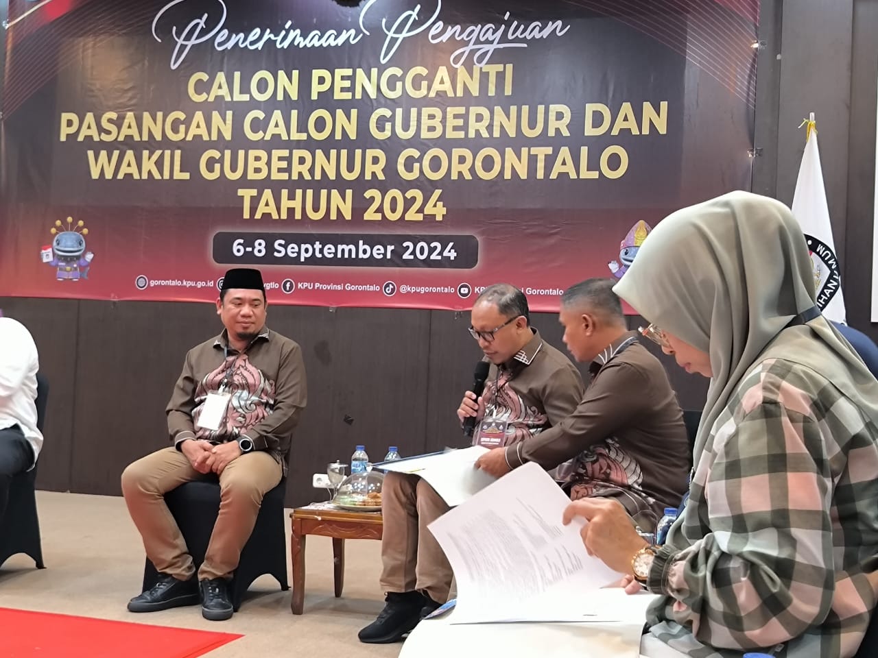Anggota Bawaslu Provinsi Gorontalo, Lismawy Ibrahim, melakukan pengawasan terhadap pengajuan calon pengganti pasangan calon Gubernur dan Wakil Gubernur Gorontalo untuk Pemilihan 2024 di Kantor KPU Provinsi Gorontalo pada Sabtu, (7/9/2024).[/caption]