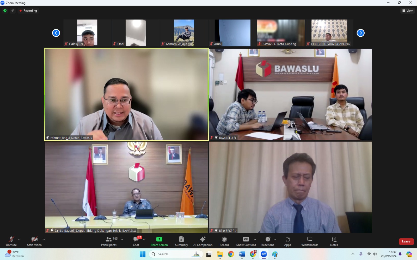 Rapat Koordinasi Persiapan Pengawasan Penetapan Pasangan Calon yang digelar Bawaslu RI secara daring melalui Zoom pada Jumat, (20/9/2024)[/caption]