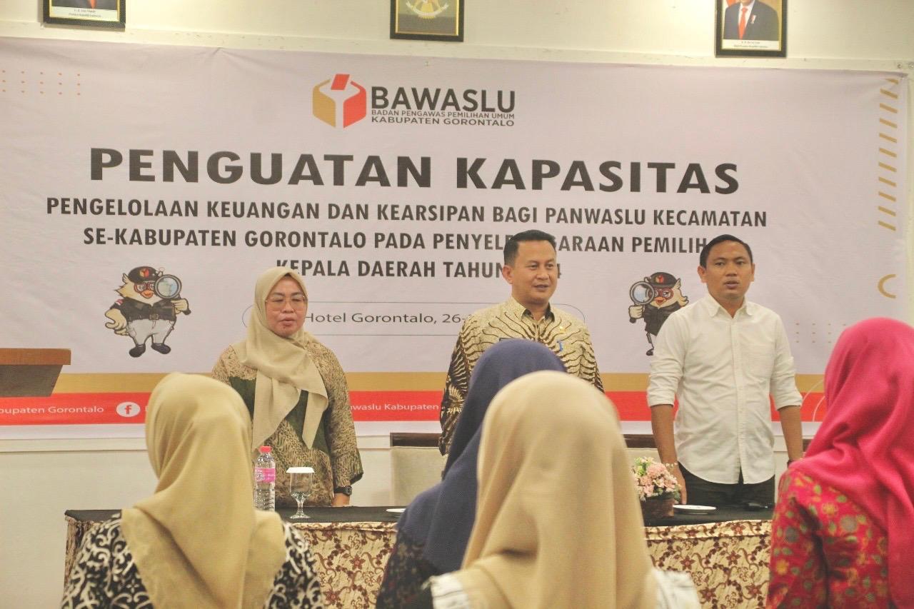 Nikson Entengo, membuka kegiatan pelatihan Penguatan Kapasitas Pengelolaan Keuangan dan Kearsipan bagi Panitia Pengawas Kecamatan (Panwaslu) se-Kabupaten Gorontalo di Fox Hotel Kota Gorontalo, Jum'at, (26/07/2024)[/caption]