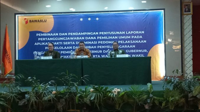 Kepala Biro Keuangan dan Barang Milik Negara (BMN) Bawaslu RI, Pakerti Luhur, membuka kegiatan Pembinaan dan pendampingan dalam penyusunan laporan pertanggungjawaban dana pemilihan umum (pemilu) menggunakan aplikasi SAKTI, serta diseminasi pedoman pelaksanaan pengelolaan dana hibah penyelenggaraan pengawasan pemilihan gubernur, wakil gubernur, bupati, wakil bupati, wali kota, dan wakil wali kota di Golden View Hotel, Kamis-Jumat (6-7/7/2023).[/caption]