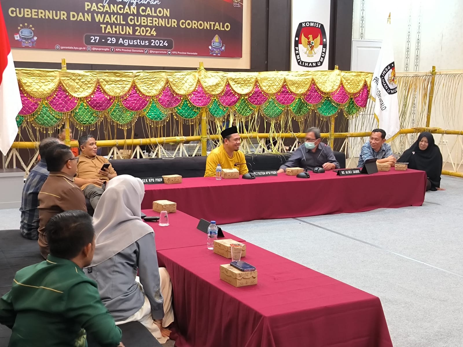 Ketua Idris Usuli bersama anggota Moh. Fadjri Arsyad, dan Lismawy Ibrahim ikuti Rapat Koordinasi Persiapan Pemeriksaan Kesehatan Bakal Pasangan Calon Gubernur dan Wakil Gubernur Gorontalo dalam Pemilihan Tahun 2024 di Kantor KPU Provinsi Gorontalo, Kamis (29/08/2024).[/caption]