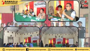 Lebih lanjut, Anggota Bawaslu Provinsi Gorontalo yang akan berakhir masa jabatan pada 2 bulan kedepan itu menambahkan, bahwa pengawasan partisipatif merupakan sarana untuk menyebarkan pesan kepada seluruh segmen masyarakat untuk lebih perduli terhadap proses pengawasan baik itu pemilu maupun pemilihan.