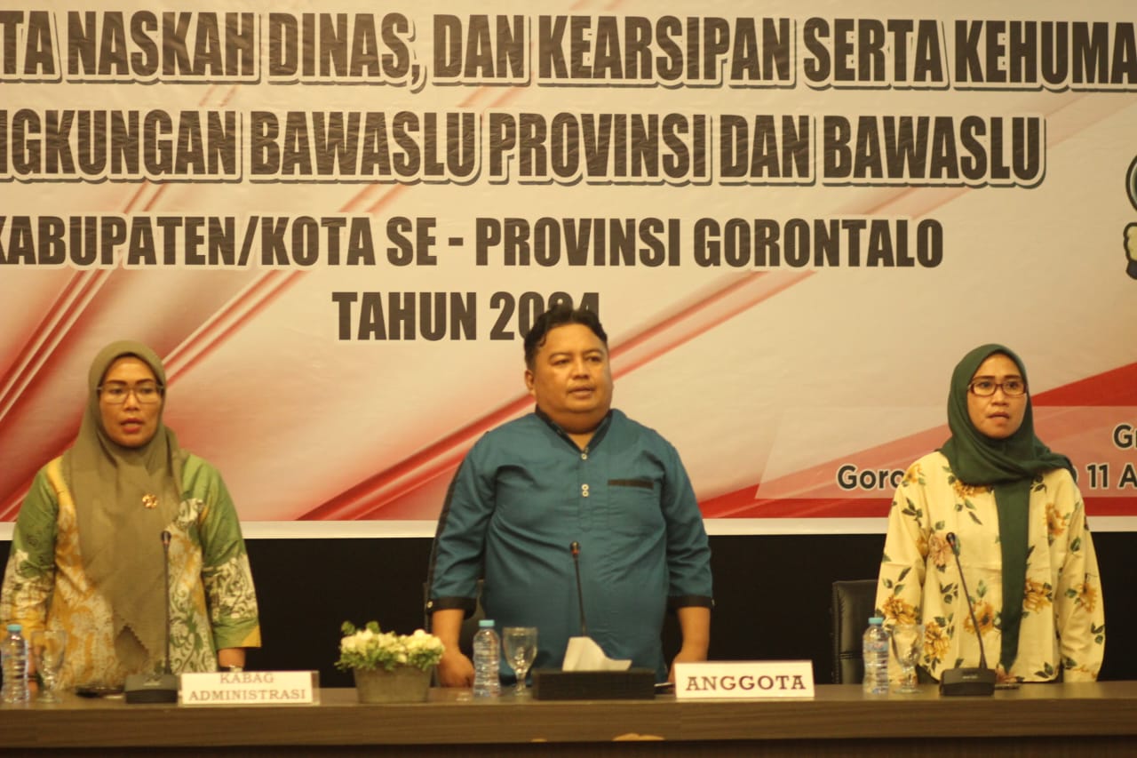 Gorontalo - Bawaslu Provinsi Gorontalo menggelar Pelatihan mengenai Tata Naskah Dinas, Kearsipan, dan Kehumasan di Hotel Grand Q, Jum'at, (09/08/2024). Acara ini dibuka secara resmi oleh Koordinator Divisi SDM, Organisasi, dan Diklat Bawaslu Provinsi Gorontalo, Amin Abdullah. Pelatihan ini bertujuan untuk meningkatkan kapasitas dan kualitas kerja dalam pengelolaan administrasi dan kehumasan di lingkungan Bawaslu.